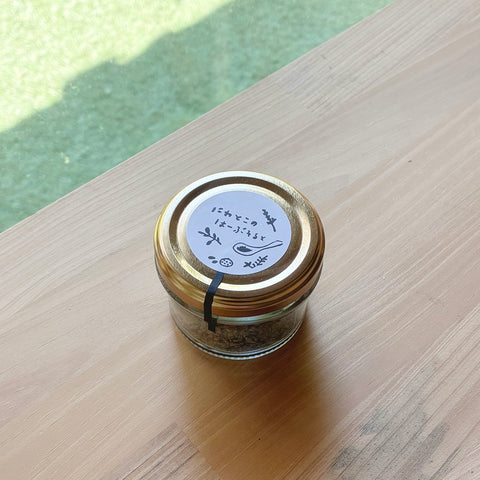 にわとこのはーぶそるとは、オレガノ、バジル、タイム、などの西洋ハーブに、山椒や陳皮といった和のスパイスをブレンド。 香りは爽やかで、和洋、どちらの料理にも驚くほどよく合います。