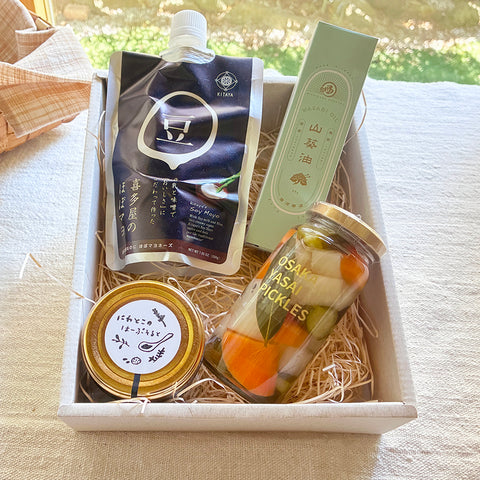 こちらは店舗で大人気の商品が4点詰まった定番食品セットです。縁市スタッフ、お客様からともに高い評価を受け、長くリピートされているラインナップを揃えました。 いつもの食卓をさらに彩ってくれるおいしいものたちを、ぜひ味わってみてください。