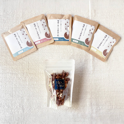 備考: | ・保存料など一切使用せず、たった2種類の原材料のみで作っています。 ・空気にさらすと湿気を吸ってべたつきやすいので、チャックで封をするもしくはお早めにお召し上がりください |