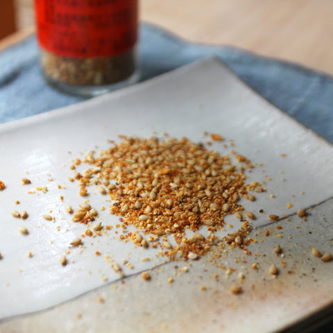 唐辛子のピリッ、みかん皮の爽やかな香り、香ばしいごまの甘みがクセになります。