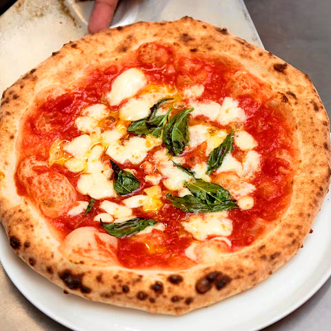 高温で一気に焼き上げた、国産小麦100%の生地の香ばしさと、具材の旨みがぎゅっと詰まった本格ナポリピッツァ。