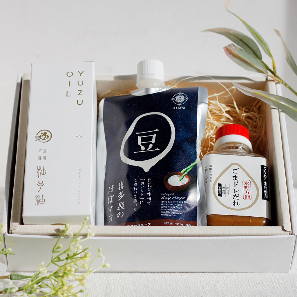 さっぱり系の柚子オイルに、ほぼマヨネーズ、王道人気のごまだれ。それぞれちがった味わいを、その日の気分によって楽しんでいただけるセットとなっております。